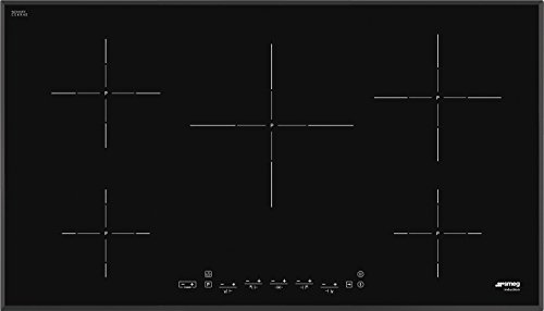 PRODUCT DESCRIPTIONS:With easy to use touch controls, the Smeg SI5952B 90cm 5 Zone Angled Edge Glass Induction Hob features "Suprema" black ceramic glass. The hob has five full powered induction zones of varying sizes and nine selectable power levels for different cooking needs. The five independent boosters offer clean, efficient cooking with a visual display to show power levels and residual heat. Functions like countdown cooking time, simmer function, melting function make different styles of cooking easy and with auto pan recognition, pan size adjustment features, it is a smart hob. The Smeg SI5952B 90cm 5 Zone Angled Edge Glass Induction Hob is safe to use with protection against auto-start up, timer with alarm, child safety lock and auto switch off when overheat. This Smeg hob with all its features and good looks is an elegant addition to any kitchen.