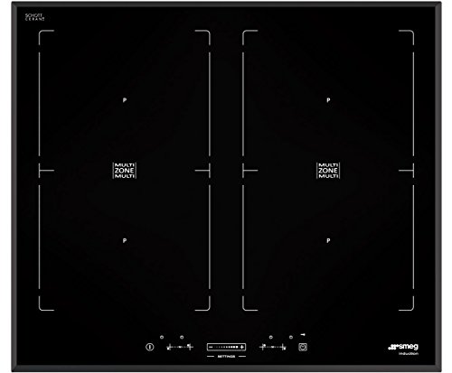 PRODUCT DESCRIPTIONS:Quickly select the desired level of heat with Smeg SIM562B Induction Hob's slider touch controls. It works by using a magnetic field and only heats the pan, the surrounding area does not get hot resulting in safe and quicker cooking. The Smeg SIM562B Induction Hob has four induction zones with boosters and 9 power levels with quick selection setting, giving you added flexibility. The two zones on the left and two zones on the right can be combined to form two multizones. Each multizone automatically detects the size and position of the pots and pans, and heats up the exact spots where they stand, providing optimum heat distribution and efficiency. This allows several pans to be used at once, large or small, offering freedom of placement and greater flexibility. You can effortlessly and conveniently, cook and keep this hob clean. Its Suprema black ceramic glass surface makes cleaning a breeze. The angled edge design of Smeg SIM562B Induction Hob gives a sleek flush finish in the kitchen. With features like automatic pan detection, end of cooking acoustic alarm, child safety lock and many more, this Smeg SIM562B Induction Hob is a speedy, clean, cooking machine with quick, easy and precise heat selection.